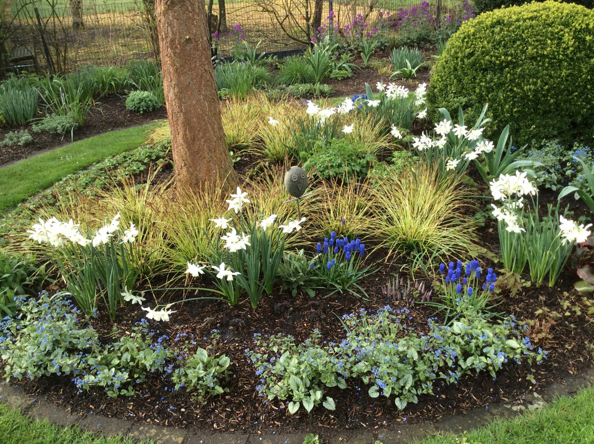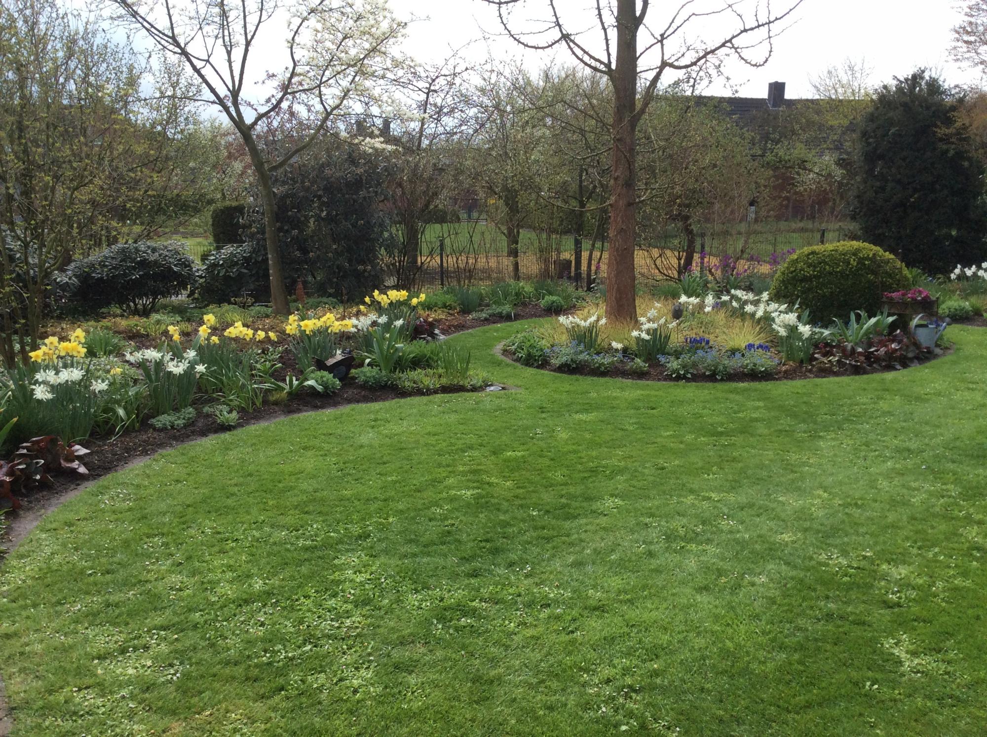Im Herbst 2016 habe ich einen durch Frau Telahr erstellten Blumenzwiebel-Pflanzplan umgesetzt und großzügig etwa 900 Blumenzwiebeln gesteckt, die die Gartenzeit schon früh beginnen lassen.