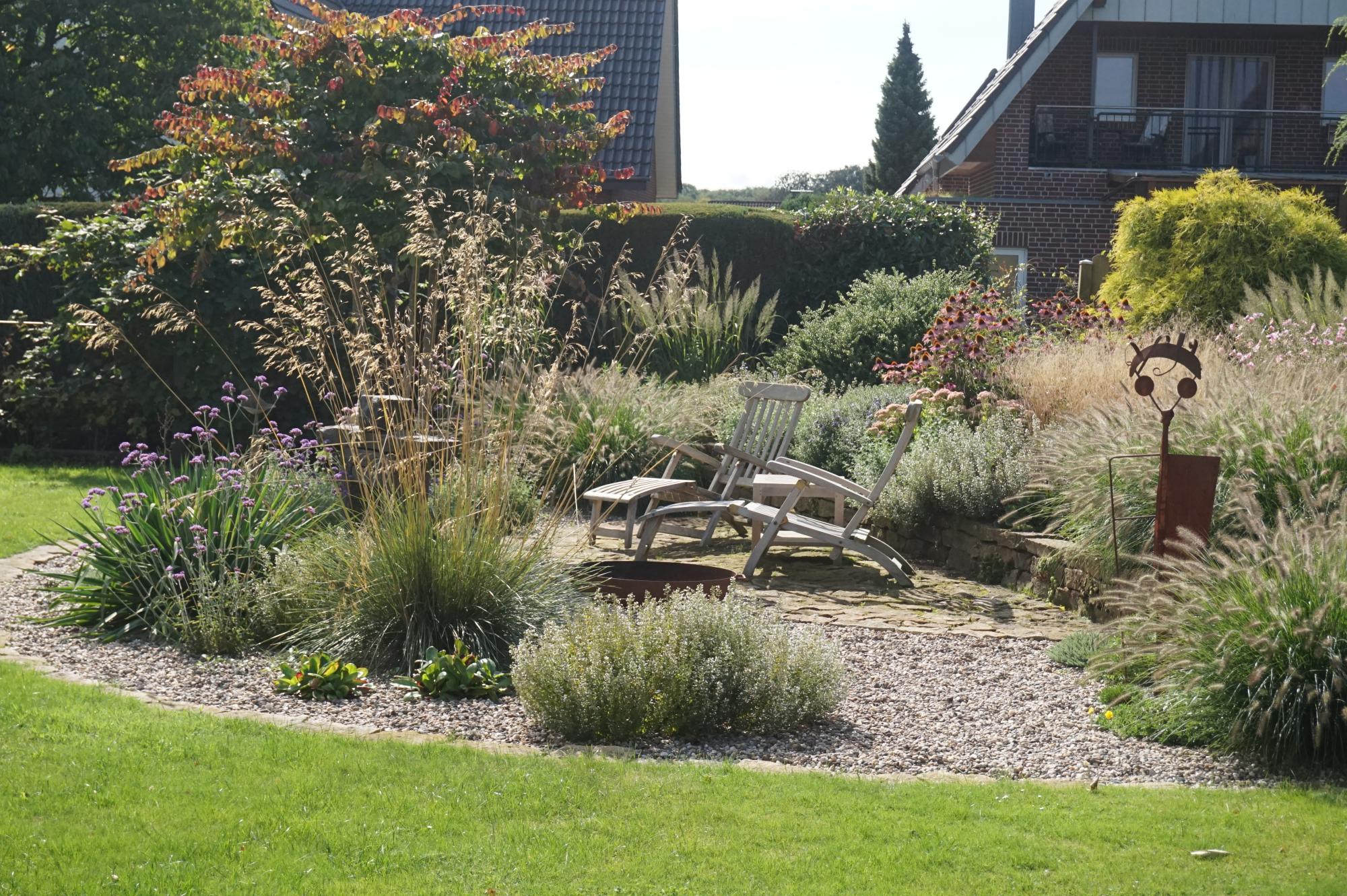 Ein schöner Platz inmitten von Stauden und Gräsern, um die Abendsonne zu genießen.