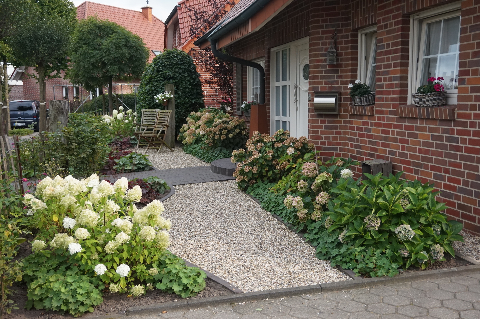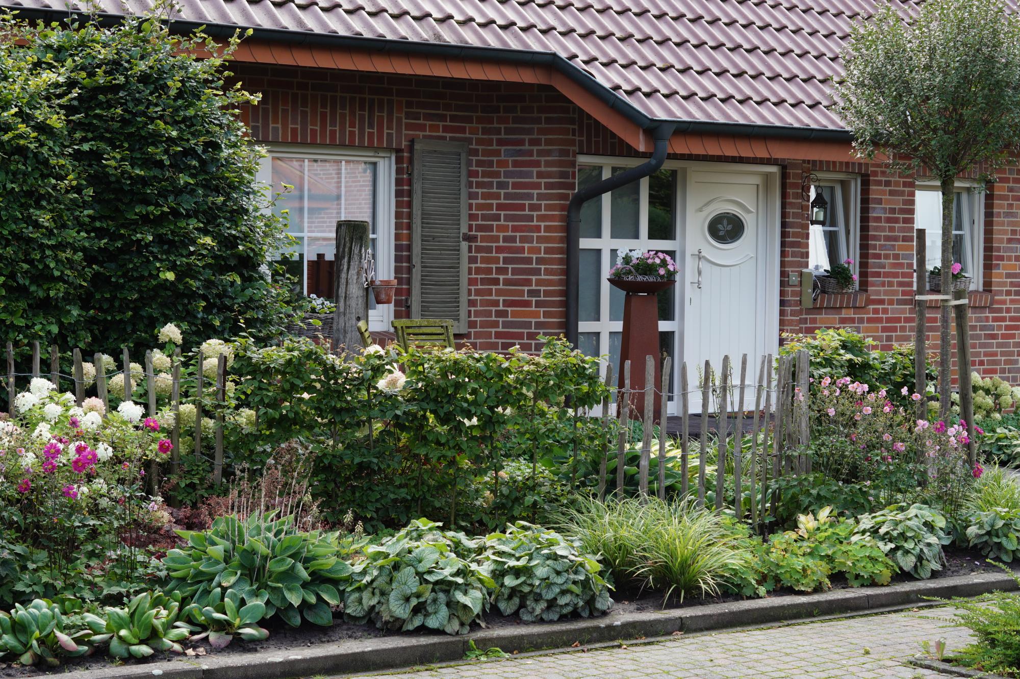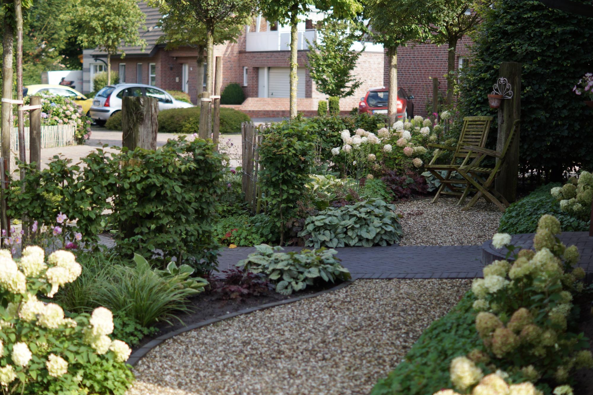 Der Vorgarten soll optisch zum schönen Haus im Landhausstil passen – das war der Wunsch der Kunden.