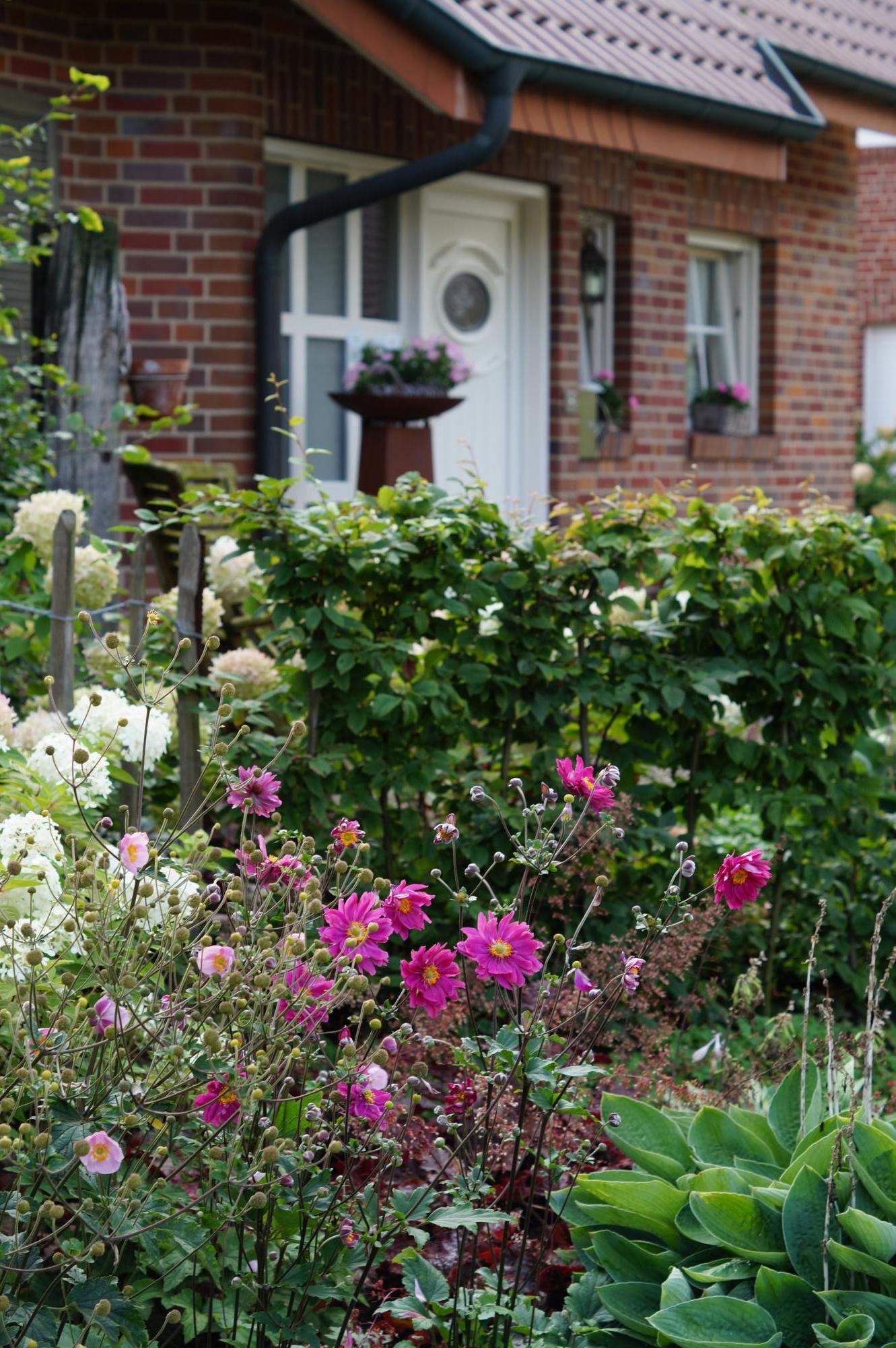 “Liebe Frau Telahr, wir wollen uns endlich einmal bedanken für die wundervolle Planung unseres Vorgartens. Nachdem wir es zunächst einige Male selbst mit der Gestaltung versucht haben, haben wir uns an Sie gewandt. Sie haben schon nach kurzer Zeit nachvollziehen können, welcher Stil zu uns passt, was wir wünschen und haben unsere Wünsche, Anregungen und Vorstellungen wirklich wundervoll umgesetzt. Wir haben die gelieferten Pflanzen im November 2015 eingesetzt und gleich im folgenden Jahr blühte alles reichlich und farbenfroh. Von der Fülle der Blüten der einzelnen Pflanzen waren wir mehr als erstaunt. Der Garten bereitet uns auch nach mehr als 4 Jahren immer noch sehr viel Freude. Zudem wurde er schnell pflegeleichter. Auch dies war ein großer Wunsch von uns. Weil wir von unserem Vorgarten so begeistert waren, haben wir Ihnen nun im Jahr 2019 auch die Planung unseres Hauptgartens anvertraut. Auch hier haben Sie unsere Vorstellungen aufgegriffen, Änderungswünsche eingearbeitet und so erneut einen tollen Plan vorgelegt. Besonders gut gefällt uns, dass wir, da wir die Gestaltung allein umsetzen, flexibel planen können und Sie uns mit den entsprechenden Pflanzenlieferungen zu den jeweiligen Zeitpunkten unterstützen und sich unserem Zeitplan anpassen. Der erste Teil des Gartens ist bereits fertig gestellt. Die Pflanzen haben bereits nach der Pflanzung im Frühjahr sehr reich geblüht. Wir sind schon sehr gespannt auf das Gesamtbild. Besonders gut gefällt uns im Hauptgarten bereits jetzt die Fülle an Insekten, die von den Pflanzen angezogen werden. Es brummt und summt nur so im Garten. Vielen Dank für Ihre Unterstützung. Liebe Grüße aus Oeding!”