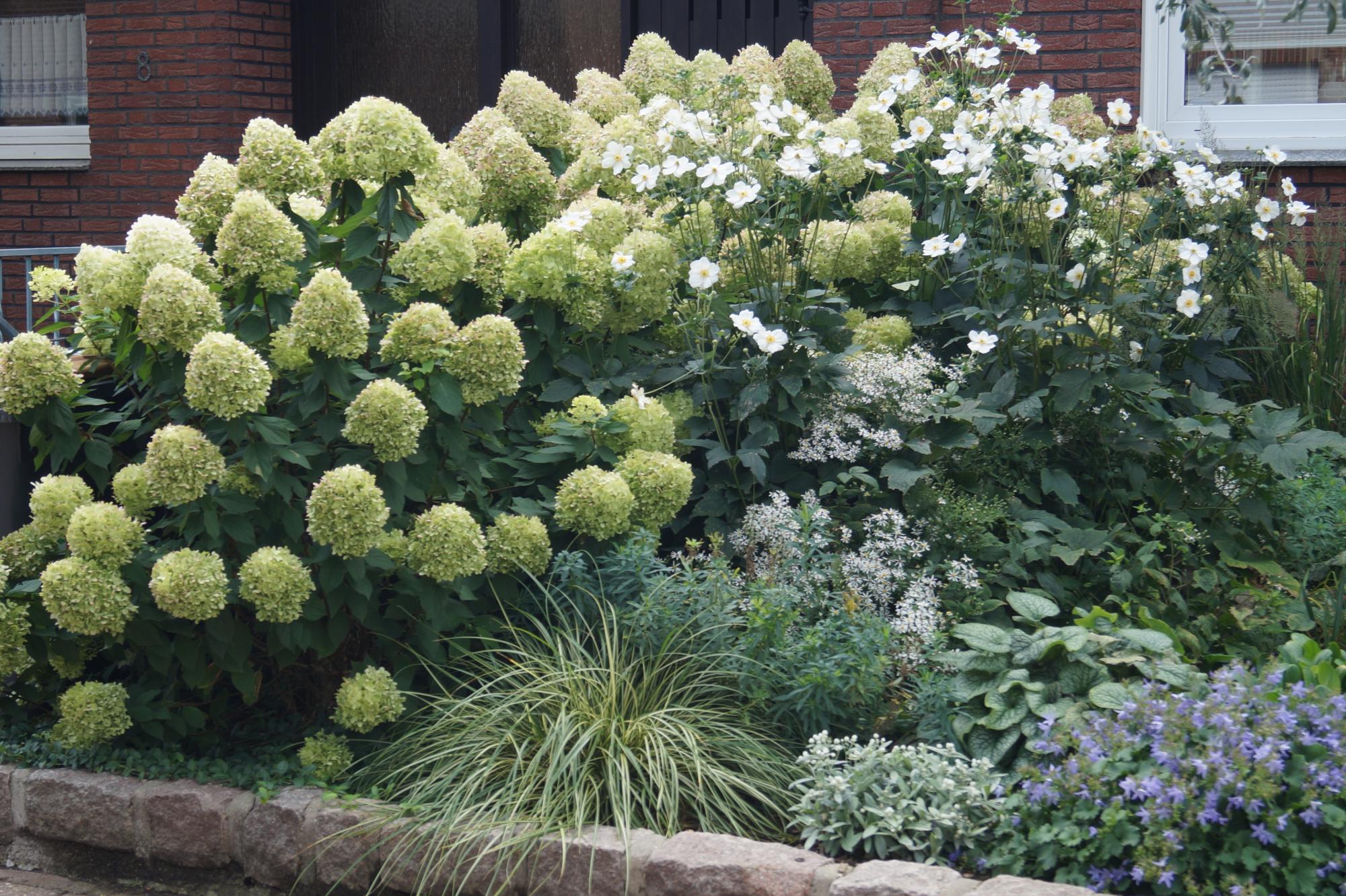 Ein schönes Beispiel, dass ein Vorgarten sehr pflegeleicht gestaltet werden kann. Bereits nach kurzer Zeit hat sich die Bepflanzung so gut entwickelt, dass der Boden gut bedeckt ist – da hat Unkraut wenig Chancen. Wirklich spannend ist außerdem wie sich dieser Vorgarten jahreszeitlich verändert! Das Ehepaar aus Bocholt ist begeistert. Schauen Sie selbst….