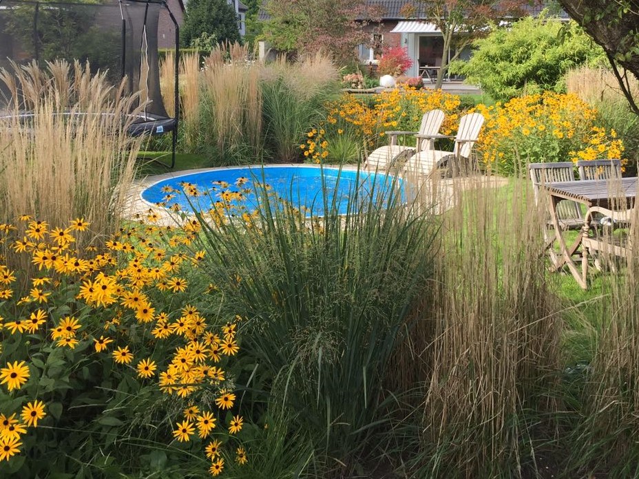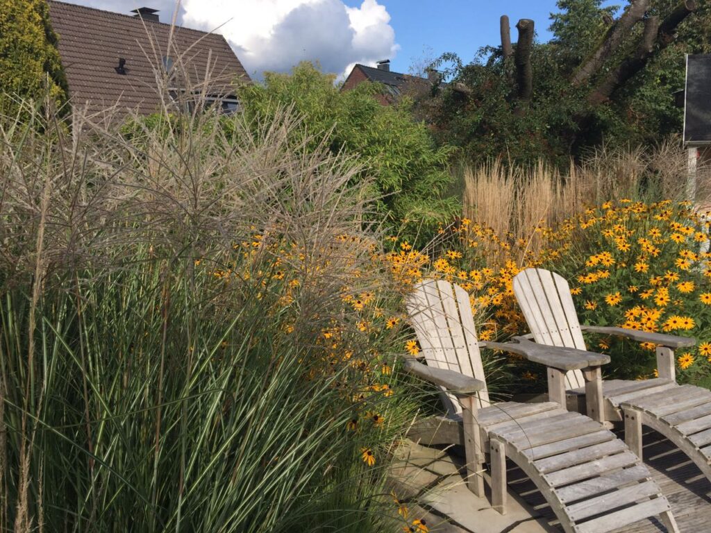 Auf den Fotos sieht man sehr gut, wie wunderbar Sichtschutz mit Gräsern und Stauden erzielt werden kann.